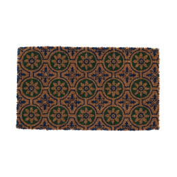 Portugál mintás nagyméretű kókuszrost lábtörlő, zöld-kék 75x45 cm